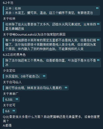 6.2 баннер Первая половина: Дулин Остальные: Водяной Дракон, Айкофи, Венти, порядок этих троих неясен, есть смешанный баннер Мондштадта