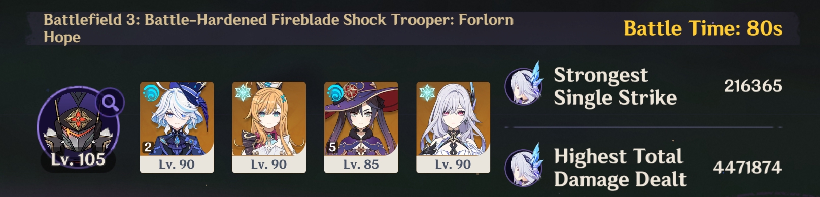Последнюю звезду текущим сетапом взять крайне проблематично, Синий и Фишка слишком долго ботов заряжают, Навия-бедолага не справляется с Утёнком за цикл, а на второй стороне Итто давят, туда минимум 1:40 оставлять надо.