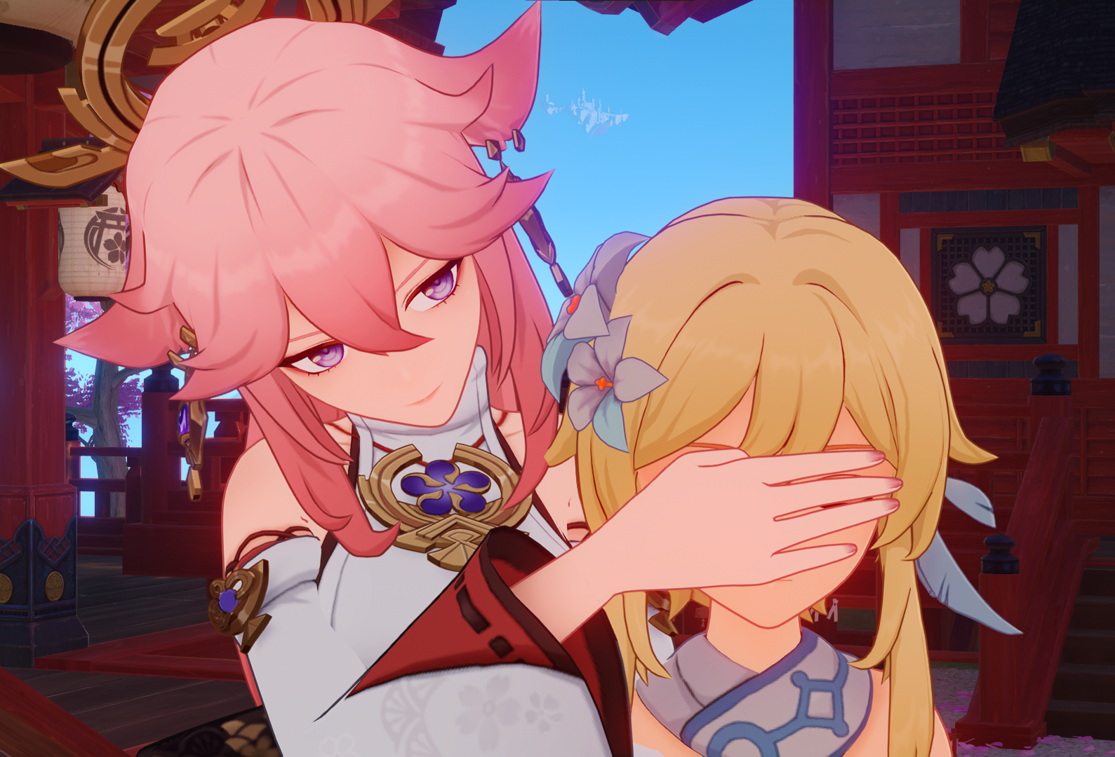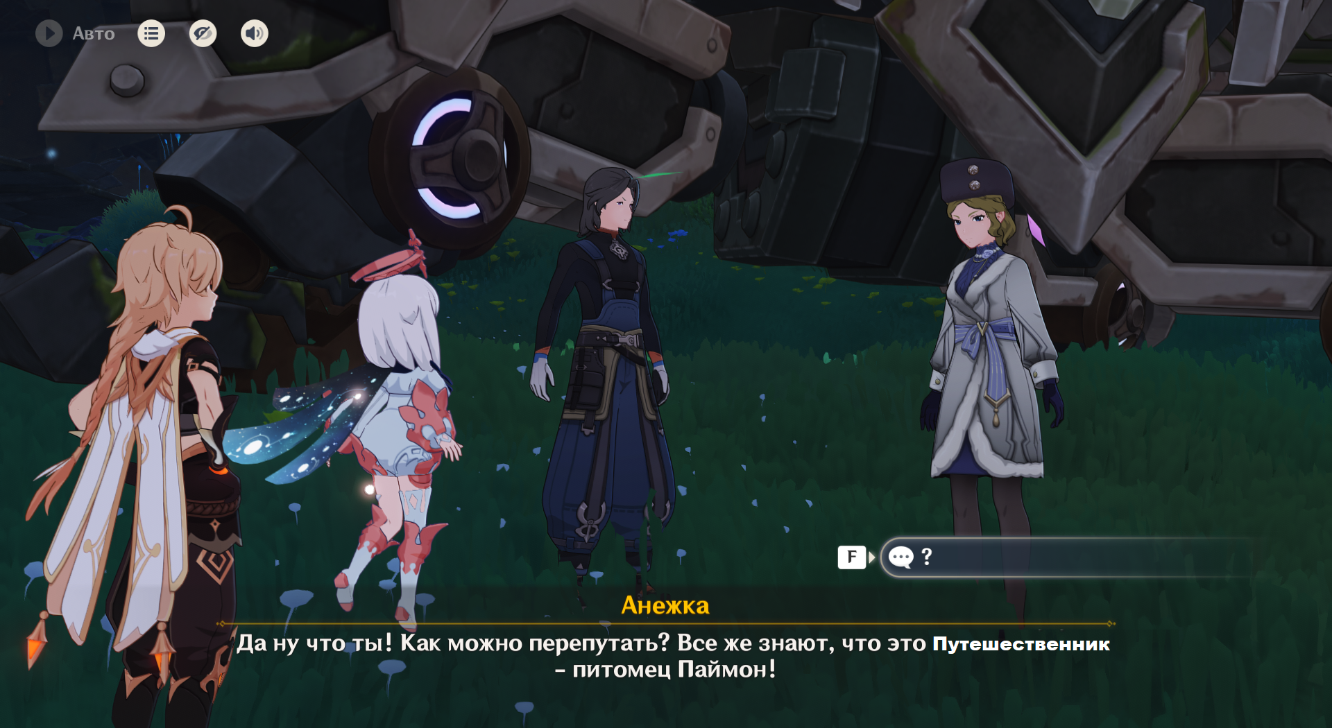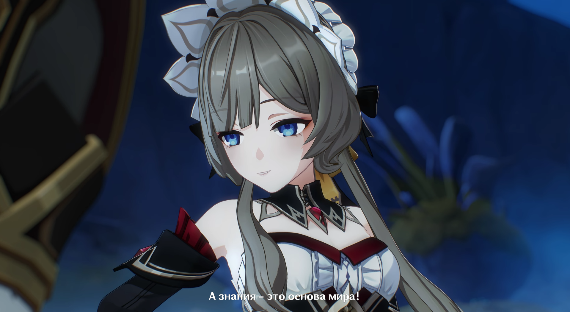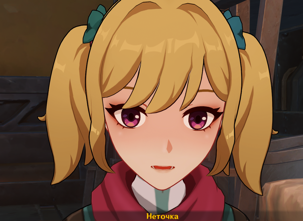 ...как оказалось, в Нод-Крае мы действительно кормим её вкусными пирожными, поём песенки и водим гулять. Плюс судя по диалогам, в фатуях она была на уровне общего ребёнка, которого учили разным вещам и играли в прятки. Так что теория о том, что все отчёты она отдавала Царице с милыми кошачьим стикерами, сидя у неё на коленках, ещё не опровергнута.