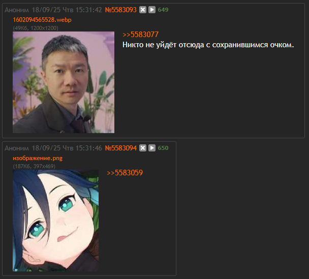 >>5580630 → Дайски спала в тот день до обеда, когда зашла в тредик, то там постов 700+ было и она подумала, что нет смысла сиять в этом тредике уже и проще новый подождать. В итоге тредик до позднего вечера добивали и Дайски все не сияла, но на ночь перекатили и Дайски стала сиять, Эол Мустангович увидел это и приревновал , видимо думая, что лично чем-то не угодил Дайски. Теперь каждый раз когда он видит как Дайски сияет, его сердечко снова обливается слезами и Эол поет о своей боли.
