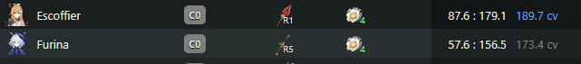 Шэнь Хэ с р1 сигной, Эскофье с р1 хомой, ешкосетом и кубком на атаку, у Скирк р1 омут, сигнатурный сет, шапка на атаку и крио кубок, у Богини пресвятой фавоний и ешкосет на 38к хп.