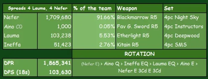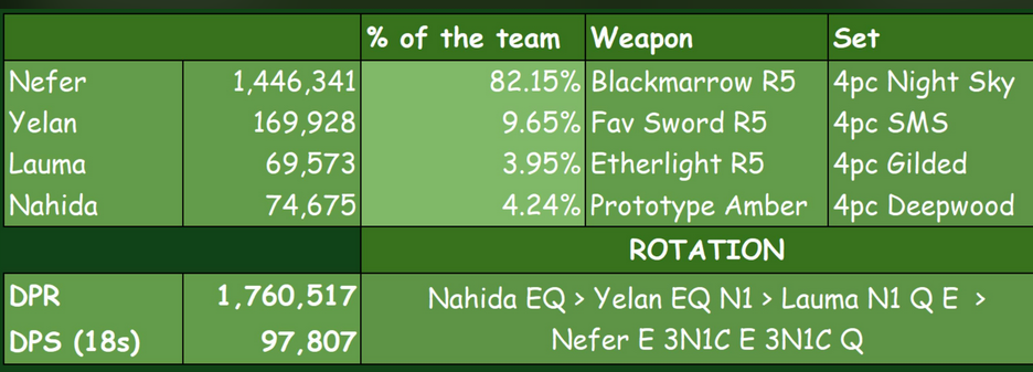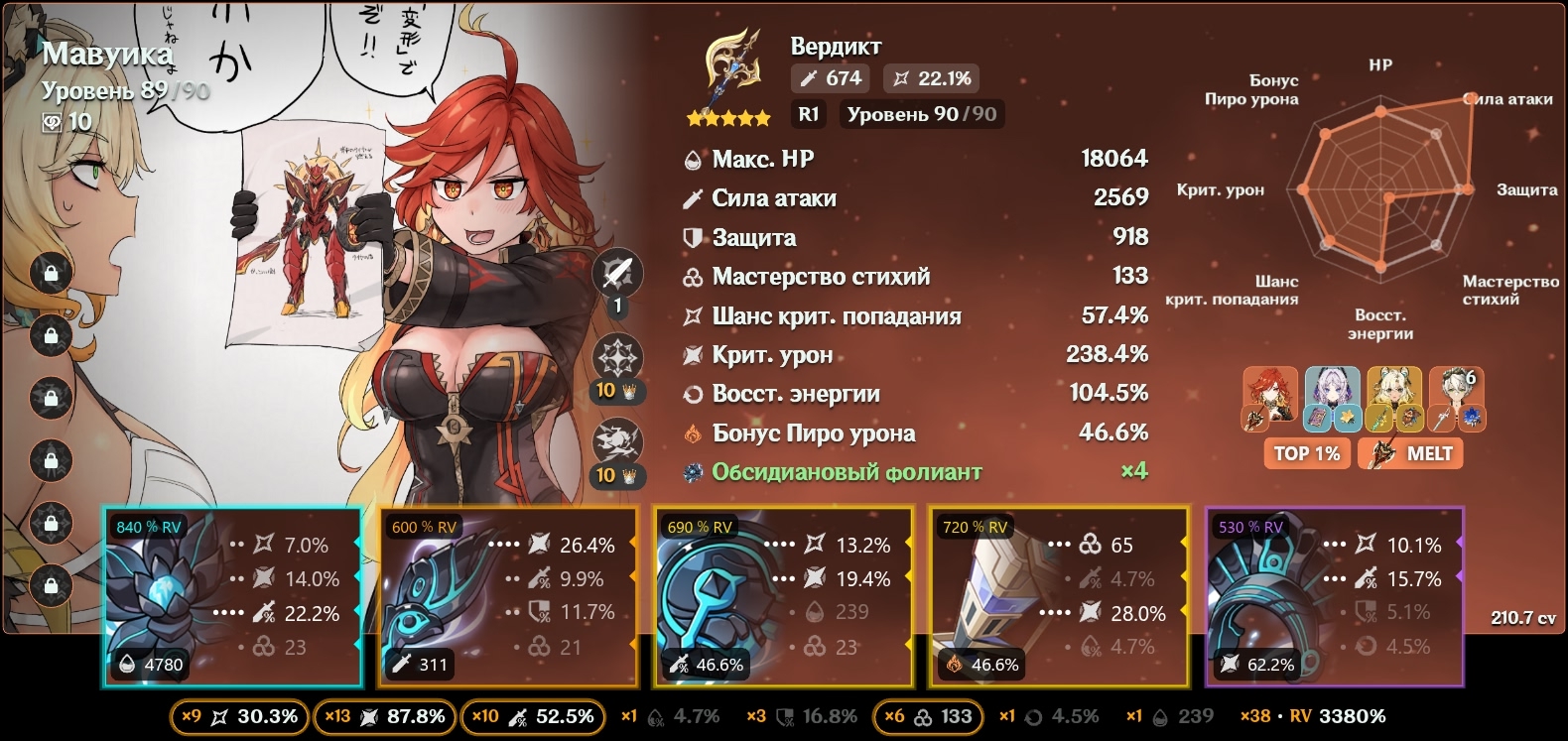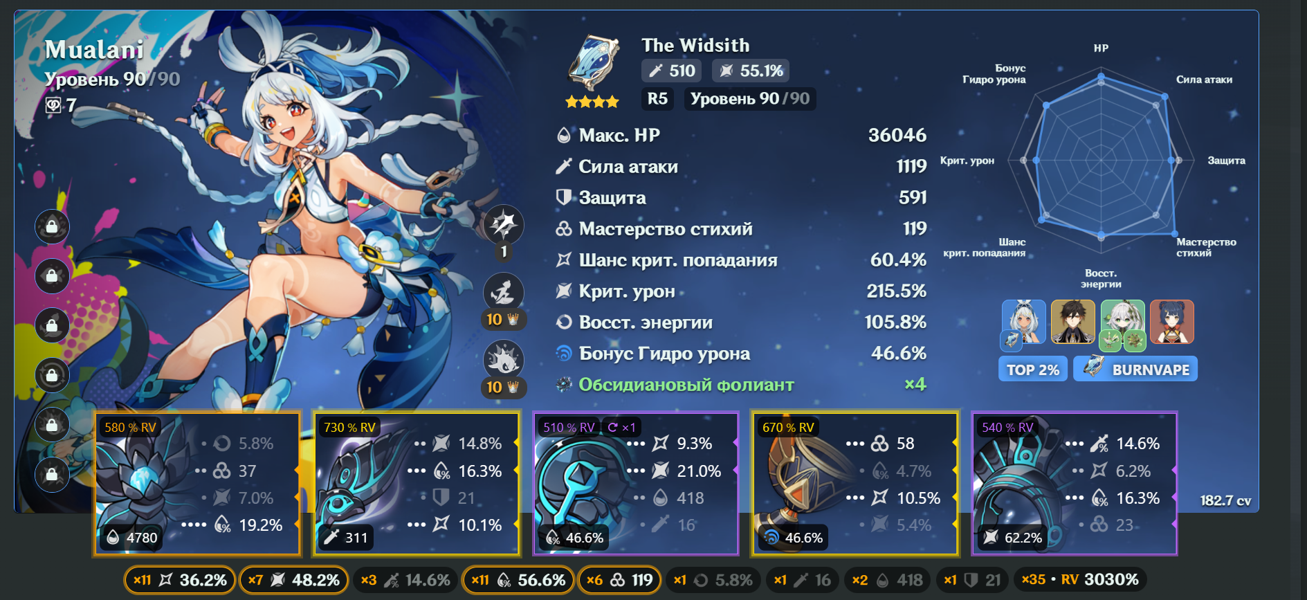 Пересобрал Куки в этот сет до этого бегала в дендро сетике на срез дендро, стало даже больше на 80МС по итогу у нее, нацепил на Лабубу дремучий лес собственно, чтоб он в пачке не терялся. Нахуярил ей фулл ЕМ и ЕР билд как везде советуют типа до этого было 800МС и 55/140 критов, ща 24/75 и 1050 МС без бафов.