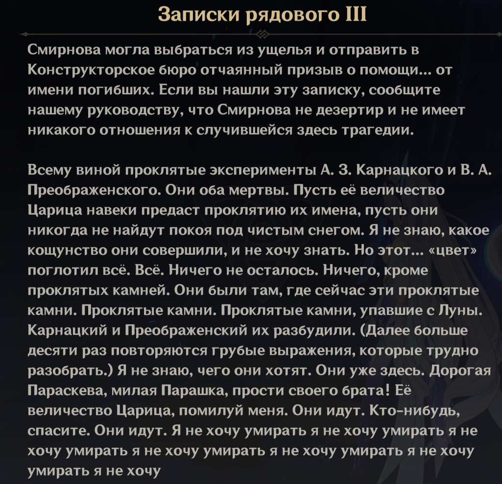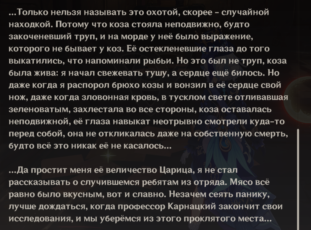 >>5587494 Новый прогрев от разрабов,вообщем-то не плохой.Типо иллюзия опенворлда и живых персонажей.Первая была инеффа которая стоит в Натлане в разных местах. Еще у Катерины Ягода подскакивает когда ты похолишь