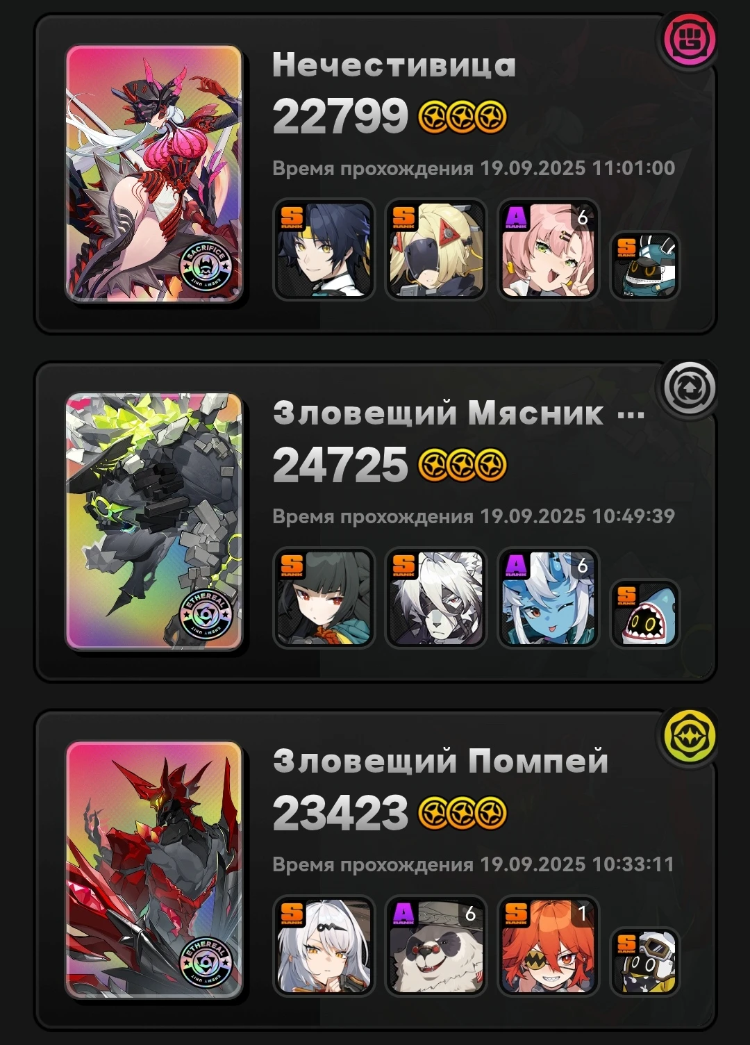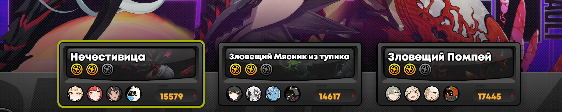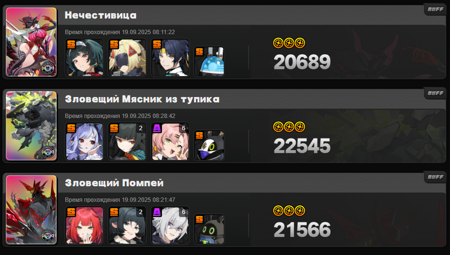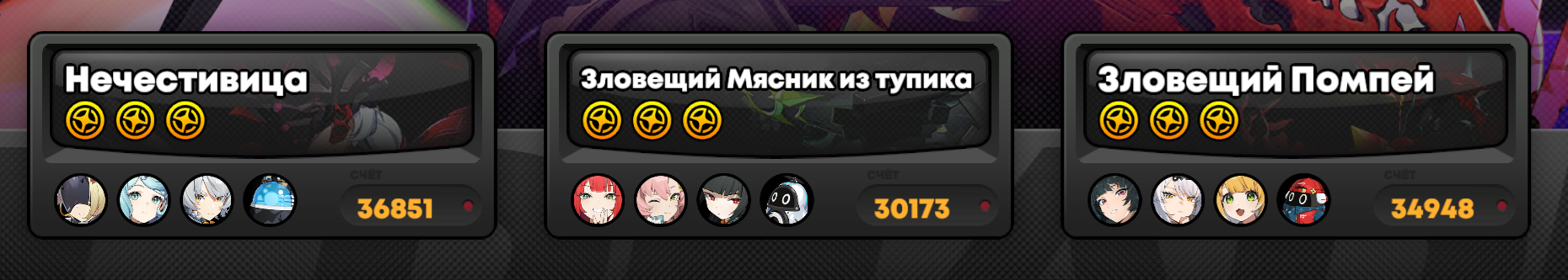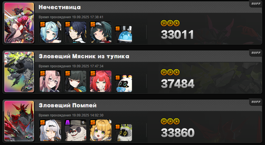 Моя команда по набору 13к очков слаженной правильно собранной тимой со знанием уязвимостей и кита персонажей против сигнатурного босса с сигнатурными баффами. Артов орфи у меня вообще не оказалось, держите скриншот.