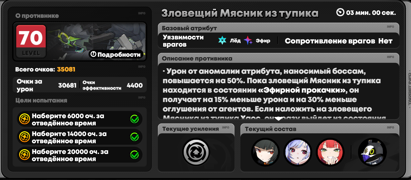 >>5596978 Ну этот босс под аномалистов (пикрелейтед). Урон под атрибутом аномалии увеличивается на 50%. Наколпление стана уменьшается на 30% и урон на 15% пока не прокнет хаос. Т.е. мясника просто не выгодно бить не аномалистами. Даже условная Янаги мимо уяза будет лучше.