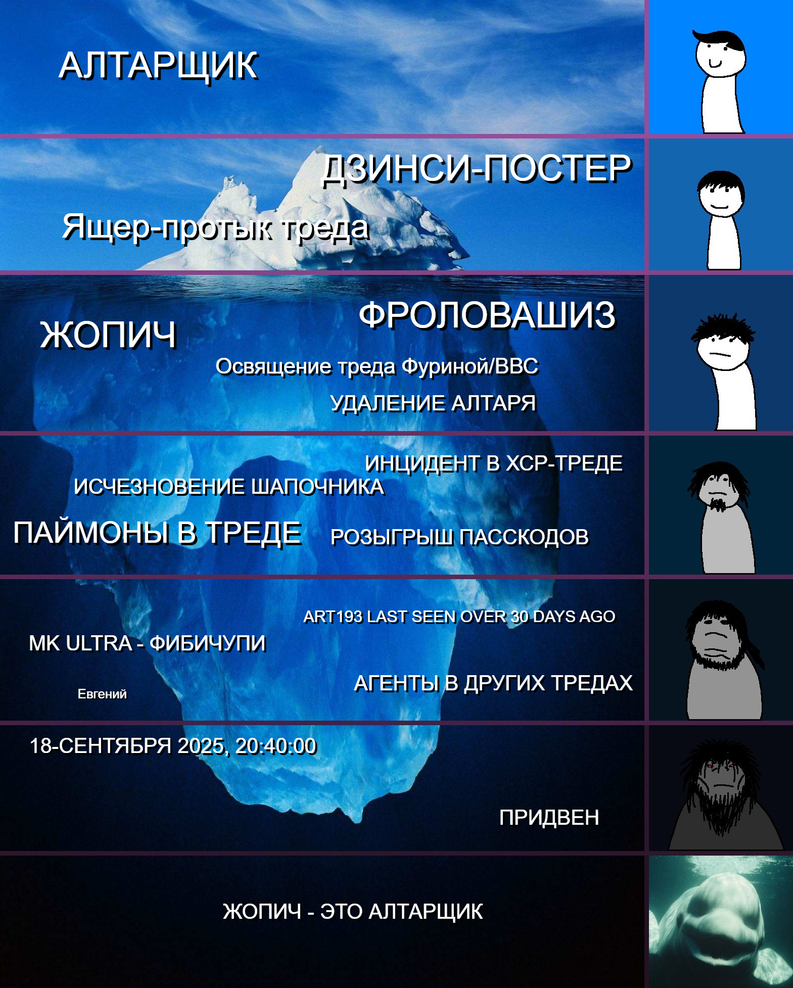 >Ряяя, обсуждаете шизов Что поделать, если именно шизики игру-то и обсуждают? Даже жопич набросами провоцирует обсуждение сюжета, не говоря о китай-куне или фроловашизе, которые норм разборы делают. Без них здесь было бы пусто, знай только алтарщик бы клепал свое творчество раз в месяц и все.