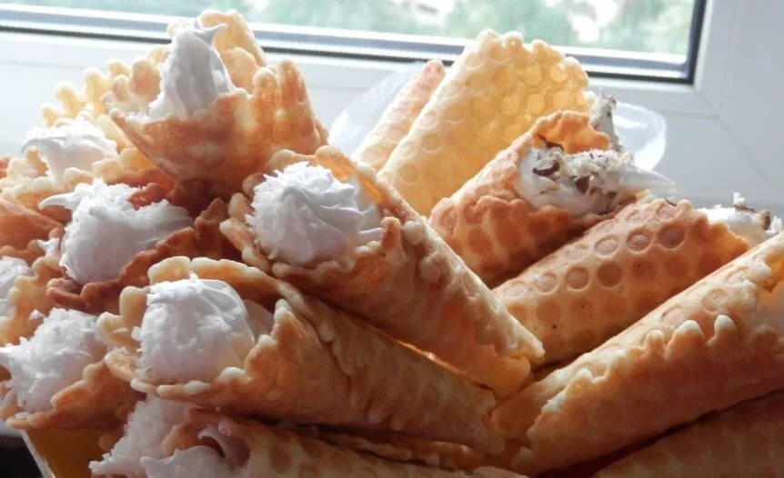 >>5598165 С вареной сгущенкой это уже немного другое, это уже больше советская кухня, а тут именно с кремом: белковым, сливки или заварной крем. Хотя по большому счету крумкаки - это даже просто вафли без нихуя. Так что хуй знает. Но с вареной сгущенкой - этотчисто снгшное и постсоветское лакомство