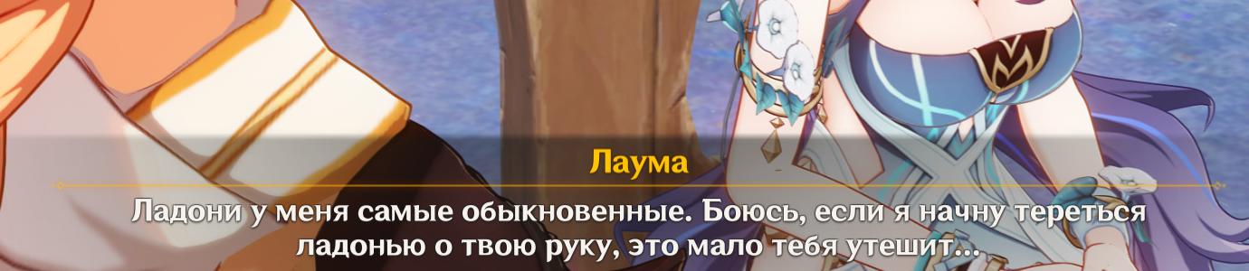 Когда паймонам удобно, они готовы забыть что Лаума потомок Гиперборейцев и у нее резист к холоду. Она буквально в трейлерах стоит по пояс в ледяной воде и ей все равно. Но нет, она видите ли одета не как фемцелка, поэтому надо нацепить на нее пуховик чтобы скрыть не только сиси, но и всю фигуру