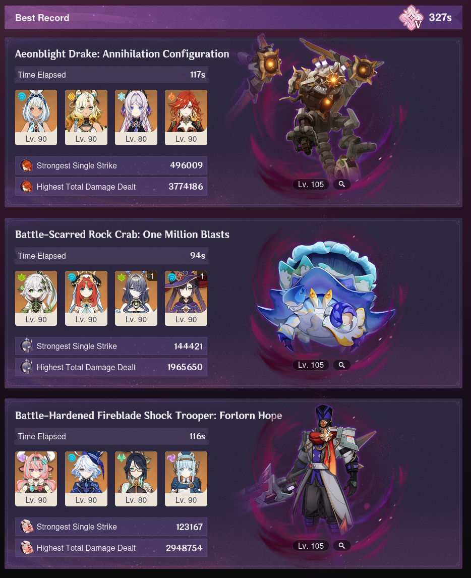 >>5599033 Хотелось именно Нилу-блумами без Лаумы попробовать. В общем получилось, но только когда в первую половину взял Инеффу - таймер сразу -20с, что и дало необходимое время для обычного Нилу-блума (без констосигн). Ну и Мидзуки затащила даааааа! Кто скипнул мои соболезнования, имбу пропустили. >>5599051 >>5599055 >>5599068 Дак и так понятно, что топ-1 имба Мявуика затащит. А вы классическими Нилу-блумами попробуйте.
