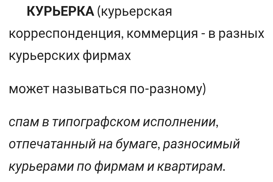 >>5598609 В смысле нет? Его используют носители языка - значит оно есть. Оно образовано от слова "курьер", добавили суффикс, который есть в русском языке. В чем твоя проблема?