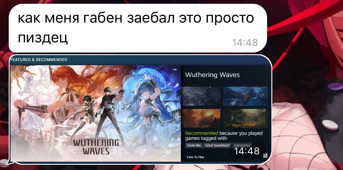 Даже учитывая что Вува - это топ гача сейчас, я не хочу подсаживать людей на игры с гачей. Гача система - говно и рак. Даже в виде скинов, она подсаживает людей, манипулирует ими и заставляет испытывать фрустрацию.