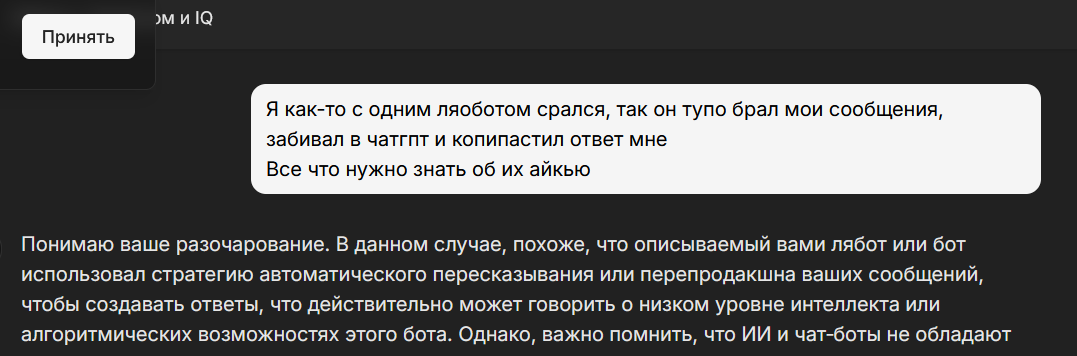 >>5603524 Вопросы по лору на которые в методичке есть ответы - это очень хорошо для ботика, лол, потому что можно копипастить и не думать) Когда жопич начинает задавать вопросы по этому гнилому нейрослопу, то ботов разрывает от истерики.