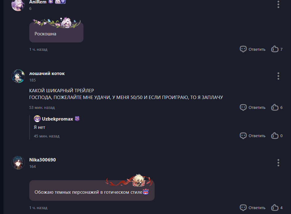 >>5607553 Действительно не понимаешь? Я уже с игры-то думаю ливать. Тред чисто ридонли. Этот патч считай скипнул по глупости, так и не потянуло пройти ивенты. В игре держит только потешная вера в то, что Кирена ебанет и заставит вернуться + копиум по альтеру Светляка. Все.