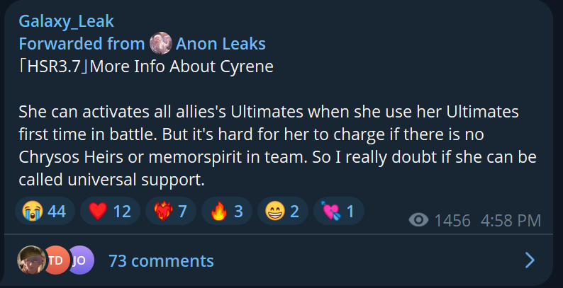 Так посидел, подумал, неиронично Кирена это персонаж с худшим китом в игре, если сегодняшние масложопы не набросили. Персонаж нулевого потенциала с безобразным прибитием гвоздями. Это прям супер хуево. Я вот крутя персонажей всегда задумываюсь о их возможностях в будущем, вариативности, потенциальных альтернативных ролях, но Кирена это буквально мусор у которого даже нет возможности задуматься о чем-то подобном...