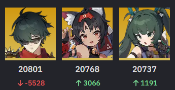 >>5607730 Да помню кто то скидывал то-ли табличку по популярности по персам или что-то подобное, так там и пань иху и бэн оба были на самом днище с 0.0001% процентом хайпа. Ну нахуй такое.