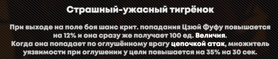 >>5613572 Фуфу так-то говно, если быть откровенным. Множителей не даёт, криты заливает - лул, ну возьми сапорта вместо неё, получишь больше бонусов, фактически Фуфу дышит просто потому, что Писюань ёбанная скейлится не от АТК, и потому ей не нужны АТК-баферы, а Николь ей не нужна, потому что Писюань и так защиту игнорирует. То есть не Фуфу крута, а просто остальные шиферу нахуй не упали от слова совсем