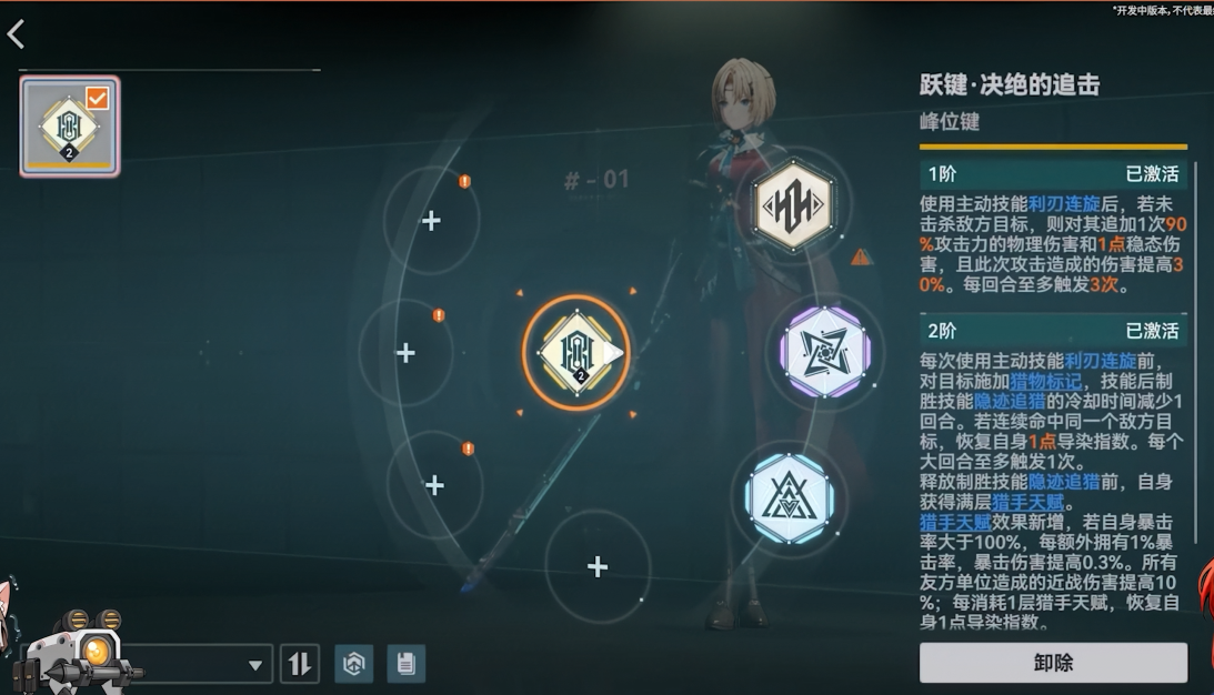 Новая система – Мод ключ 2 Апгрейд первого мод ключа. Улрид первая кто получит его, Даян следующая на очереди. Накладывает [Mark of Prey] перед каждым применением активного умения [Blade Whirlwind]. После использования этого умения, время перезарядки ульты [Hidden Pursuit] сокращается на 1 ход. Если Улрид непрерывно поражает одну и ту же цель, она получает 1 очко Confectance Index. Этот эффект может сработать только один раз за раунд. Перед использованием ульты [Hidden Pursuit], Улрид получает максимальное количество зарядов [Hunter's Talent]. Эффект [Hunter's Talent] усиливается: если шанс критического удара Улрид выше 100%, за каждый 1% критшанса сверх 100%, её критический урон увеличивается на 0,3%. Увеличивает урон, наносимый всеми союзными милишниками на 10%. За каждый израсходованный заряд [Hunter's Talent] Улрид получает 1 очко Confectance Index.