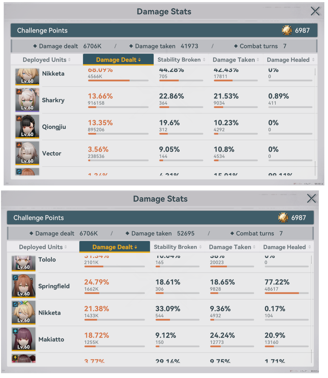 >>5638971 Куклам ниже, нужны подсосы чтобы потенциал раскрыть. Той же Рошке необходима Альва. Босса гансмока можно завалить вообще комбой из одной V6 Рошки и V6 Альвы. Куклы же сверху выдают большие цифры даже без подсосов, либо выдают ещё более огромные цифры с подсосами.