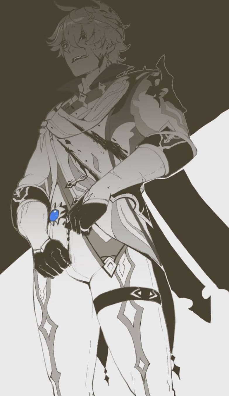 Все-таки у него стрёмное ебало. Как только Паймоны могут фанатеть по такому? Мутно-желтые зрачки, синяки под глазами, красные по краям веки (словно вывернутые наизнанку), мертвецки бледный оттенок кожи - в целом облик какой-то нездоровый.