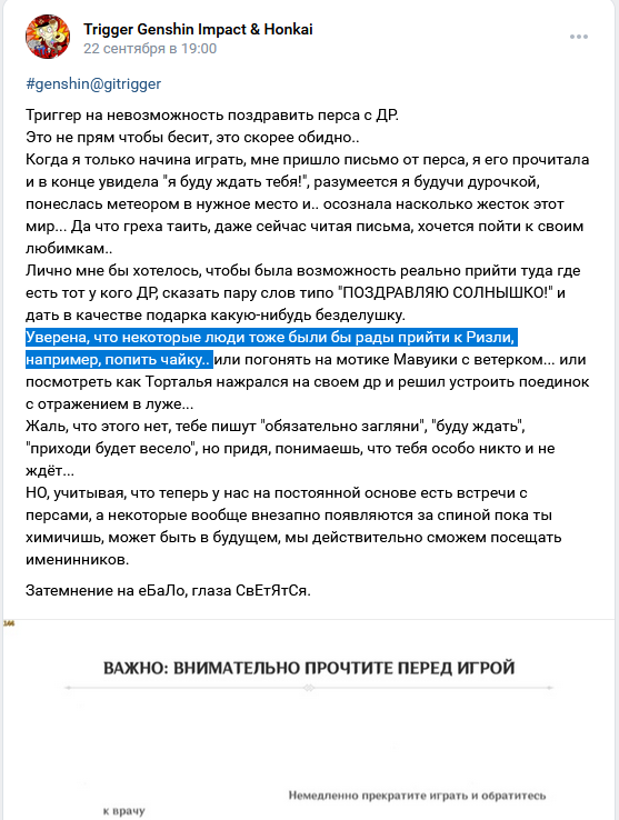 >В Лиюэ запретили жаловаться на жизнь >В Лиюэ с 1 октября вводят новый, довольно своеобразный запрет: нельзя публиковать объявления с жалобами на жизнь, работу или учебу. >По сути, под запрет попадают грусть, пессимизм и любые посты в духе «фарм данжей не имеет смысла». Это официальная борьба с «негативной энергией» в Тейвате.