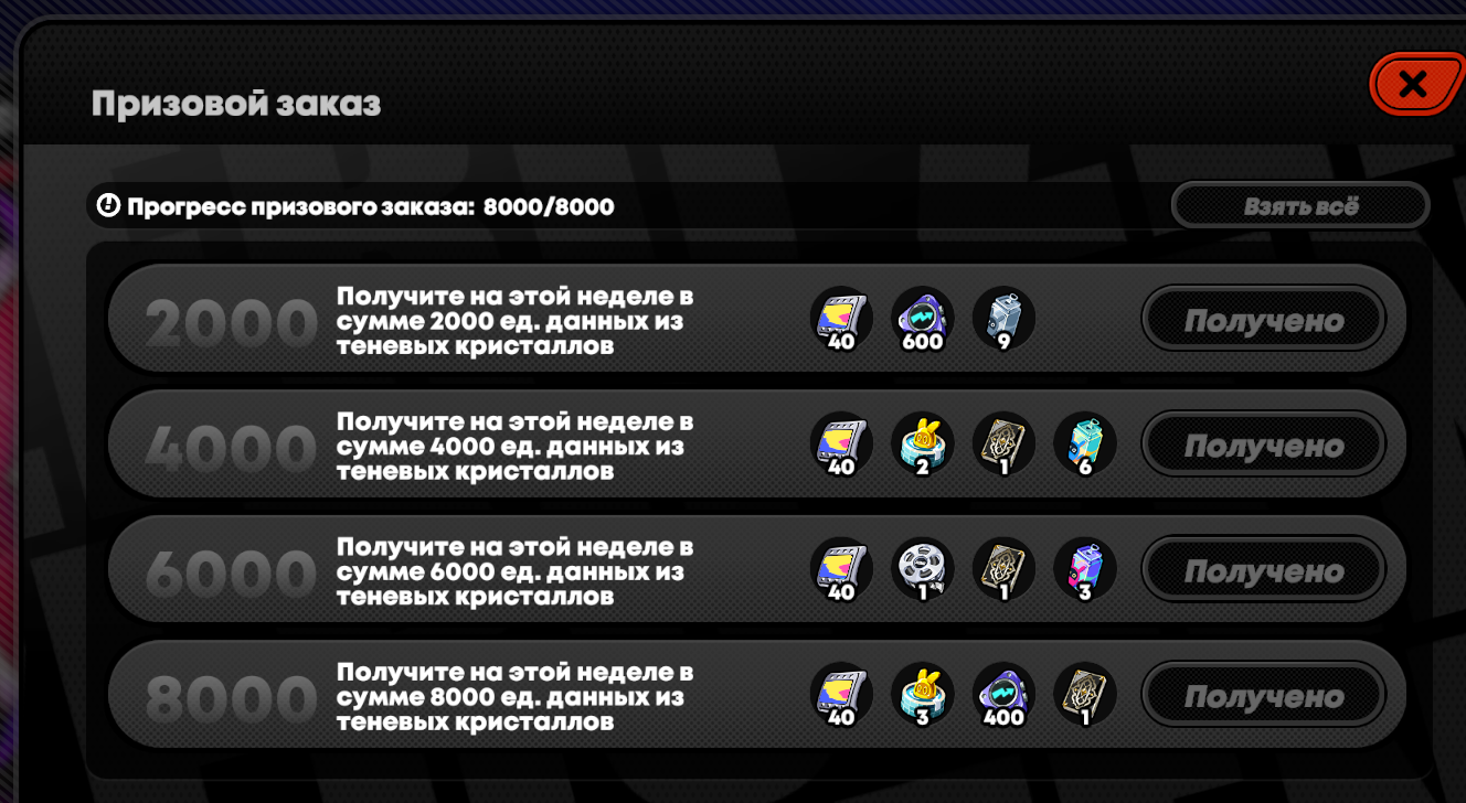 Короче, за проходку 1 раз ты получаешь 1000 заслуг. Это пик 1. За само прохождение (за боссов) тоже капает, и можно на синих клетках найти черную дыру, с которой 225 заслуг капает. Недельный лимит - 1900 заслуг, это 3-4 раза пройти (если будет фартить с черными дырами - 2 или вообще 1 раз).