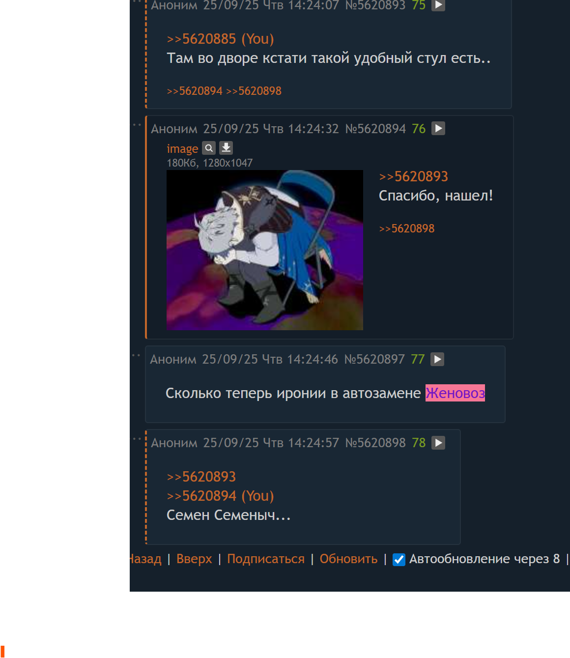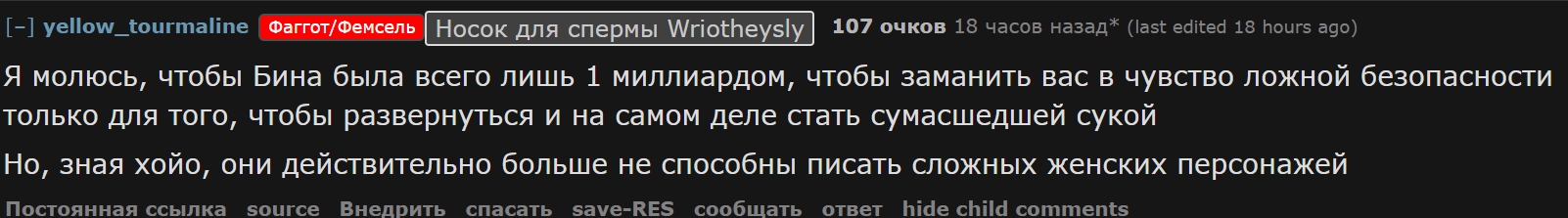 Искренне обохухеньки с паймон настолько ебанувшихся на почве самого прямого и неприкрытого сватания девочки в жены гг в истории ляоказинычей, да еще и в комбухе с неоправдавшимися надеждами на шип с фуфлоном оказавшимся пидором бегающим в баню r кремносcкому крепышу, что они уже даже не пытаются ни в какие аргументы, тупо устроили себе аутотренинг с выдуманными событиями и коупят им.