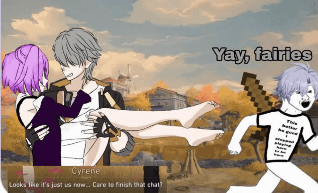 Кирена - настоящая сиса. Буквально старшая сестра, что учит молодое поколение ХСРщиц быть смелее, быть открытее в своем желании иметь отношения с несколькими парнями. Своим примером показывает, что никто не будет осуждать за такое, что это норма, это реальность современного общества. Не только нарисованные персонажи, но и игроки, что готовы оформить официальный брак несмотря на подобные игрища.