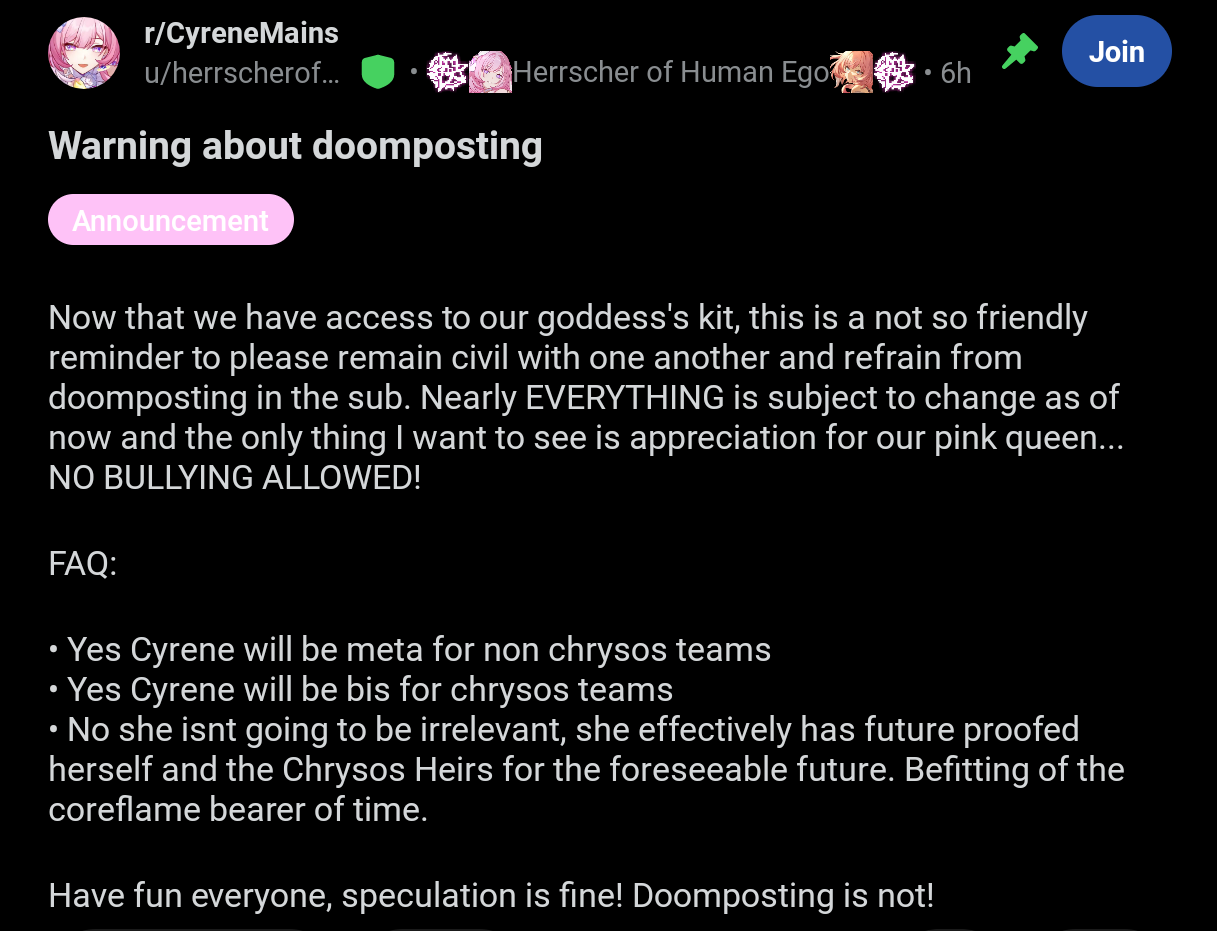 The initial choice to build Cyrene’s kit around all Chrysos instead of tying her to one or two key characters always felt like a mistake to me - and it seems the devs have come to the same conclusion 🙃