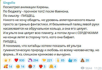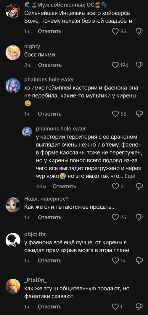 жесть потряхивает накрутивших мету и трясущихся что кирена баффнет аглаю сильнее говностории и фуфлона. сразу видно крутили самую мякотку меты по "вайфу фактору".