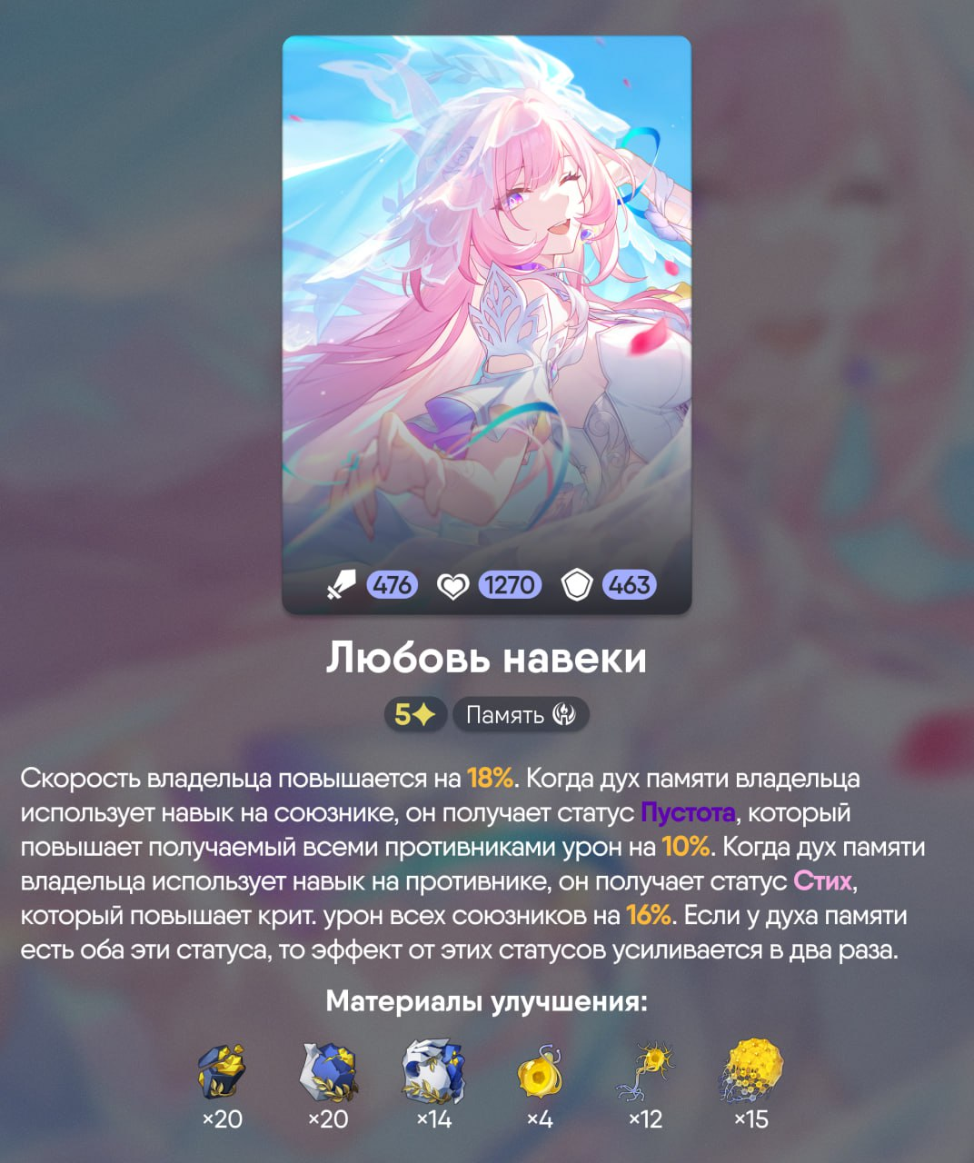 Баф для Темени-мейнДД раскрывается на полную лишь на Е2 (самой Темени), однако и на Е0 прирост урона будет ощущаться. Темень в любом случае хочет полную пачку Памяти.