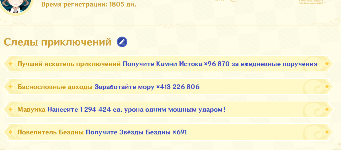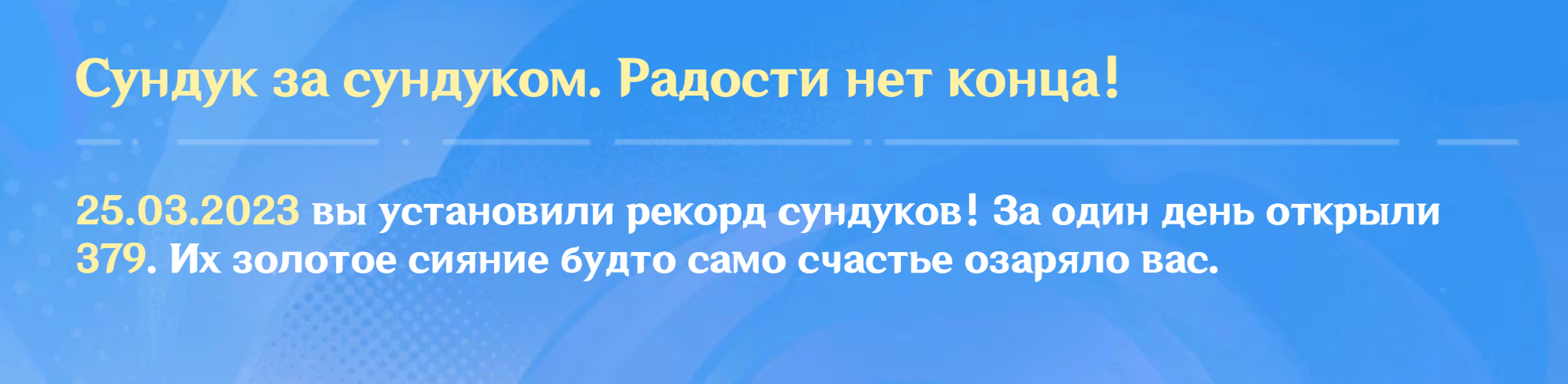 Мне кажется стата хуйня какая-то, вот эти миллиард занюханных сундуков, я никогда по 300 штук в день не нюхал, я бы с ума сошел нахуй. И чемпы которые больше всего были в отряде, я уверен что там должна быть Кди и Джинн, просто потому что тогда лимиток других и не было нихуя довольно долгое время, а у меня там Качина с какого-то хуя.