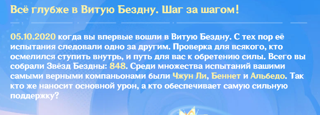 >>5637624 Это не полная статика, 864 - это же мало, если оно по 18 считает, то это 48 ресетов. До версии 4.7 в год было 24 ресетов бездны, после релиза театра уже 12. Можно просто прикинуть, что точка отсчета где-то в районе версии 3.3 началась.