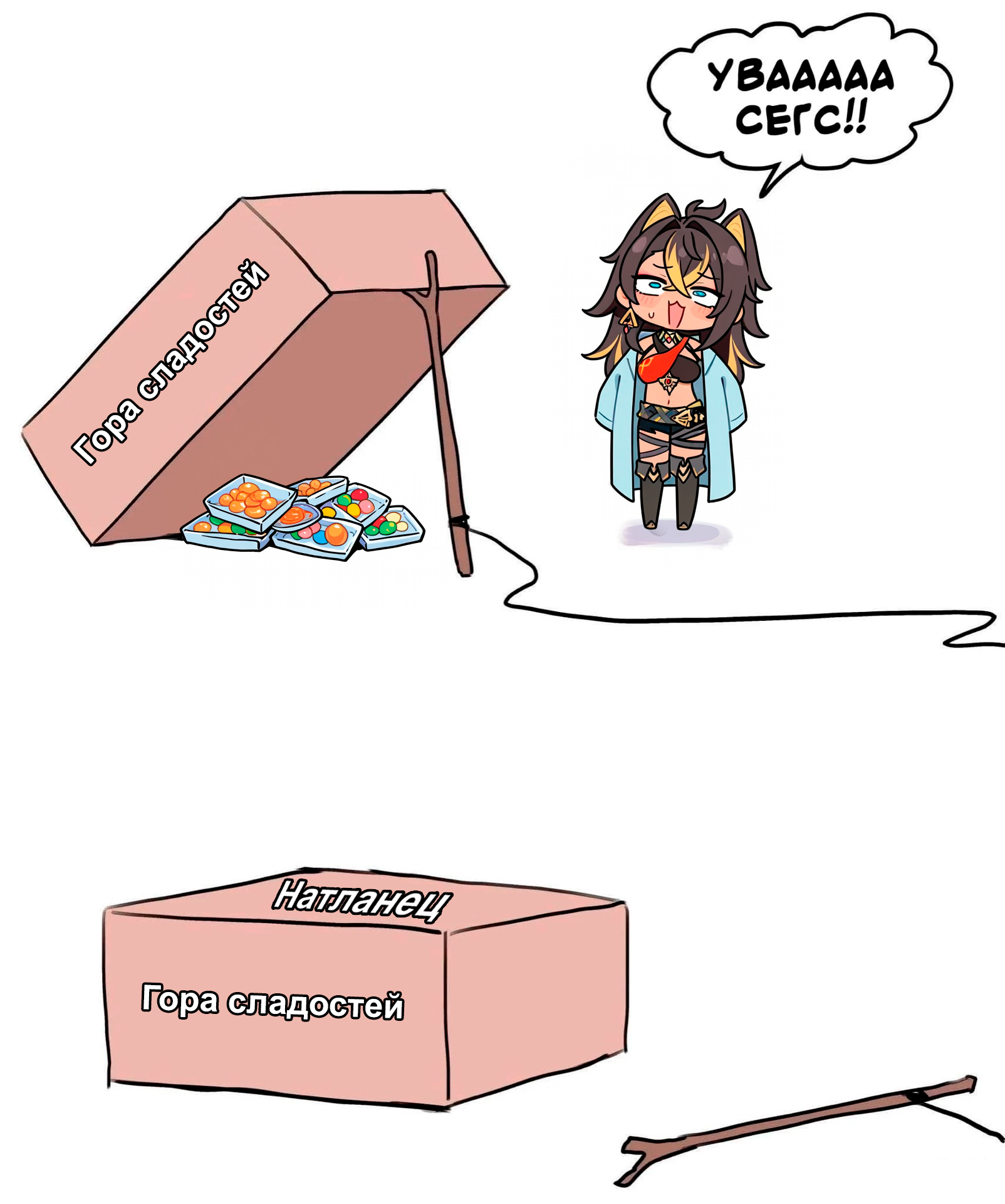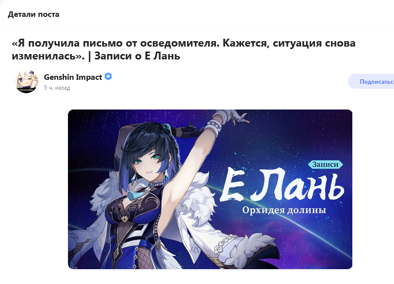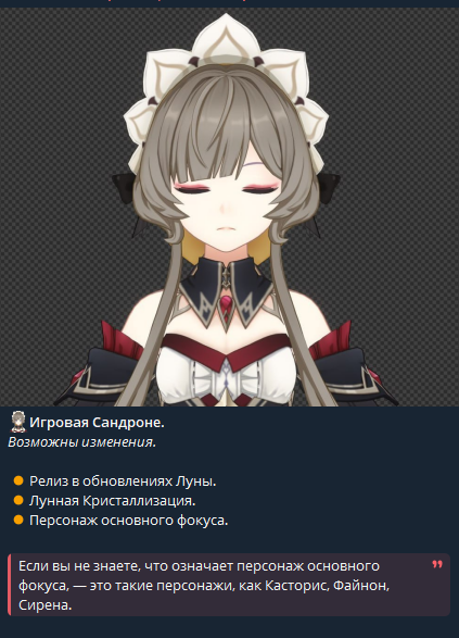 С одной стороны, лишний дендро-персонаж в команду, да и Лаума милая, а с другой - раз Лауму выкрутил, а Е Лань есть, значит имеет смысл выкрутить условную Нефер, а это значит, что какого-нибудь Дурина (ну смешной у него дизайн) или Варку придётся пропустить, ведь впереди точно должна быть Колумбина, Сандроне или Алиса, хоть кто-то из них. Да и по Ягоде неизвестно, будет ли она четвёркой, вроде дизайн слишком заковыристый для четвёрки, а в отряд хочется. В итоге всё по цепной реакции идёт, остаётся надеяться что все эти персонажи будут равномерно по патчам размазаны, а не как в Натлане, где был одновременно баннер Ситлали и Мявуики.