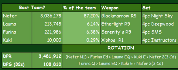 Знаете, я вот выкрутил Лауму и не пойму зачем. Такое ощущение, что Лауму и Нефер можно было спокойно скипать в плане меты. И как-то я Лауму ничерта не понял, геймплея у нее не чувствую совсем, что она делает, зачем, почему. Я так понял все что мы делаем на ней это жмем ульту и холд ешку с тремя лунами.