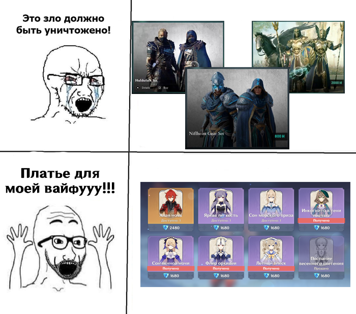 Я вот читаю тред, читаю комменты в тт и ююубе и просто охуеваю с долбаебов, которые залетели в мир видеоигр, а, в особенности, в гача-игры. Им реально нужны только красивые модельки персонажей в галерее. Тупые животные ноют, что им надо играть в игру.