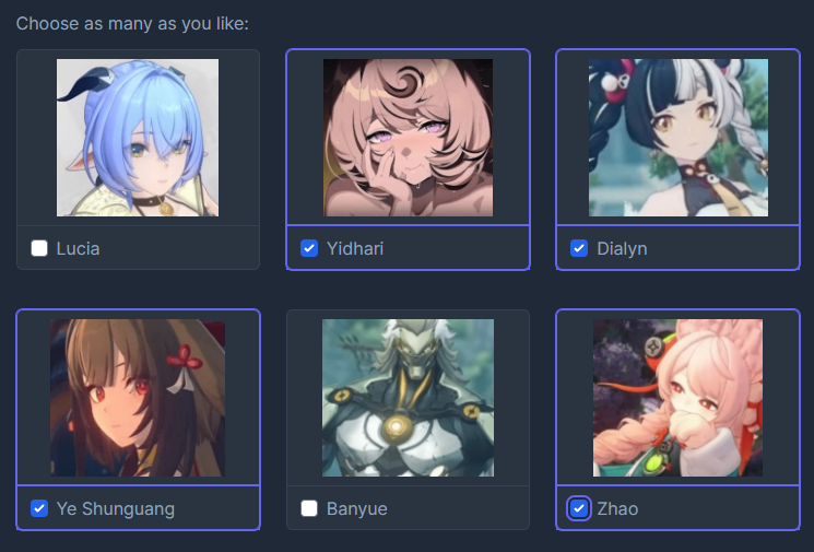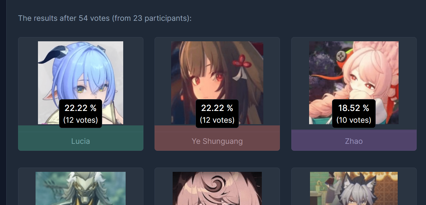 >>5646075 В хонкае есть персонажи годовщины такие как Ахерон Кастория будущая Яе Сакура и просто сильные персонажи такие как Светлячок, Фейсяо, Фаенон, Кирена. Мияби можно назвать аналогом архонтов\персов на годовщину, Исюань скорее аналог Фейсяо\Фаенона или Скирк\Арлекино из геншина.