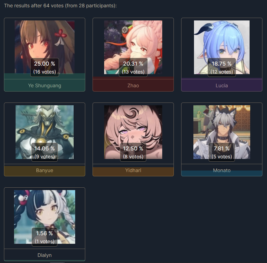 проблема в том, что в зюзе делают чаще всего рандомных персов и суют их в баннеры, а не сначала вводят в сюжетку, а потом уже в баннеры, как в том же хонкале. у меня ноль мотивации ждать этих новых чаров, ибо я даже примерно не ебу кто они. вкинули бы фасоль — я бы покрутил, а уж тем более ждал. вкинули бы даже ебаного подсоса Чжао — уже лучшее было бы.