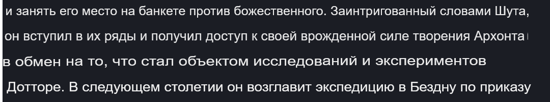 >>5646039 >Я не знаю что должно произойти чтобы я ливнул из геншина. А я знаю. В Натлане я был на грани. В 2020, когда я вкатился в игру, это было ваще случайно, по скринам и обсуждению в рандомном тг чате. Так вот, я зашел в Геншин и ахуел просто. Мне игра понравилась абсолютно по всем аспектам. Я давно такое искал. Мне именно этого и хотелось. Открытый мир, исследование, загадки и сундуки, прокачка героев, прокачка способностей, прокачка шмота, прокачка оружия, коллекционирование героев, построение отрядов, реакции. Глубина казалась бесконечной, я ещё думал что это рпг, в которую можно играть с друзьями, у меня натурально был отвал ебала. Потом конеш оказалось, что это нихуя не рпг, а просто вода в диалогах с выбором "1) Что ты... 2) ...будешь делать?" Но всё равно, на тот момент, это была игра близкой к идеалу. Всем друзьям про неё мозги проебал, всех заставил в неё играть, правда потом оказалось, что это не ммо, и кооп в этой игре кал вонючий, пустая фикция, так что друзья быстро отъебнули. Так вот, это не биография гинчинёнка, хотя могла бы быть. Ближе к сути. (нет) Это был сказочный мир, который я обожал, мир с огромным запасом прочности в плане качества. Колоссальным, блять. Но Ляо, на мой взгляд, целеустремлённо и последовательно делал игру хуже. Первый мой батхёрт в Геншине был в квесте\ивенте, когда картонный человечек в Инадзуме заговорил. Я тогда ахуел, типа лол, че за хуйня? Агуша ебаная. Как это нелепо, бумажка летает и разговариев, и выглядит как сойджек в очках. Представляете тот уровень претензий в 2.x?) Потом выкатились Аранары, с них я много бомбил, почему они выглядят как детский кал для детского садика, просто семечки какие-то, будто Ляо собрался нам продавать подушки на алике (так и было, поднял бабла). А ведь могли быть призраки как в Энканомии, или Цуруми. Технически игре это не мешало, это мешало только квестам про сахар и жрачку. Ещё немного вонял, что все стихии со всеми стакаются, а вот дендро костыль ебаный, с гео, с анемо, с крио не работает. У них было два года придумать, а они нихуя не придумали. Даже дендро стрела выстрелом в воду бутон не далает, хотя остальные элементы делают заряжен, корку льда, облачко пара и гео кристалл. Ладно типа, прощаю, балансят пацаны))) Глобальные планы))) Но халтура уже чувствовалась. Хотя опять же, почему нет дендро кристалла с гео, это баланс не нарушает. Ну да хуй с ним, поворчал и забыл. Но в чашу весов, где Геншин кал, и где Геншин топ, в кал капает, и капает, а вот в топ почти нихуя. Потом Скарамуш, Ирминсуль, копчение Дашки, лоликал архонт Нахида... Последняя лока, Саарамуш, или как там, где за агуша-птенчика летаешь, семечки собираешь, я ваще дропнул нахуй Геншин, настолько он нестерпимым был и сил уже не было. Опять же этот красный челик мог выглядеть как угодно, но выглядел он как детская агушевая поебота. (Уровень претензии представили?) Вернулся в Фонтейне, в 3.1 вроде, ваши холивары с Лини и Нёвиком пропустил. Опять же, прикиньте, у меня была претензия и я не хотел крутить Фурину, потому что у неё покемоны были агушевыми, прикиньте какой тогда был уровень притензии. Похую, затерпел, схавал. К мелюзинам часто доёбывался, типа блять, что это за кал ваще агушевой, какие-то мелкий покемоны стоят, зачем они ваще миру нужны, почему не обычные стражники как в других локах? В Монде, в Ли Юэ, в Инадзуме и Сумеру? Почему ваще не фулл роботы на