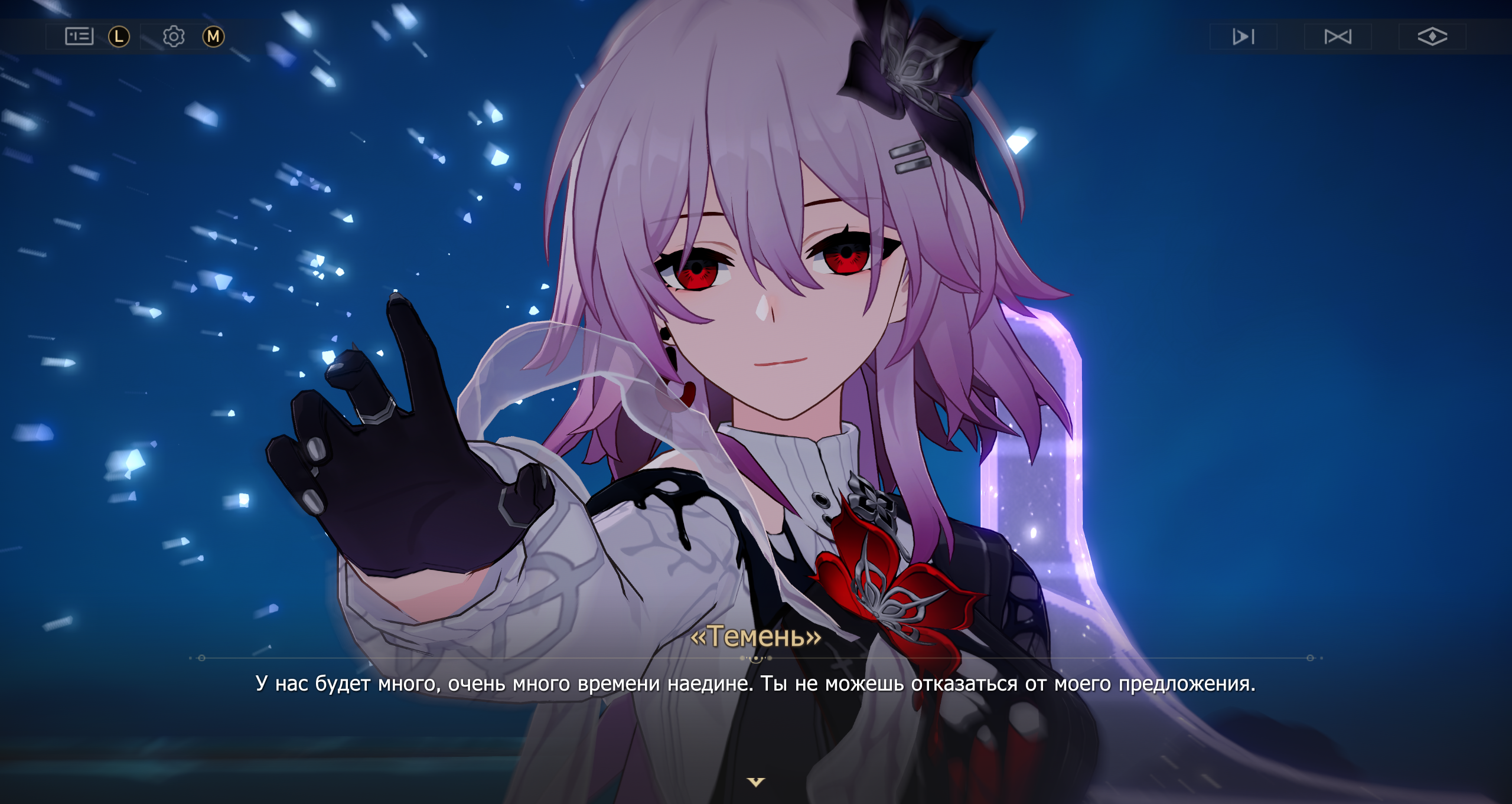 В наше время тех, кто играет от суперпробития, остались единицы. Они либо всё ещё цепляются за старые надежды и порой перебарщивают с копиумом, либо просто не в своём уме. «Просто выбей Е2, и всё будет в порядке», — говорят они. Довольно жалкое зрелище. Я почувствовал её сочувствующий взгляд на своей шее, и меня пробила дрожь — такая же сильная, как в тот раз, когда я выбил розоволосую девушку, скейлящуюся от ХП и теряющую здоровье (Фу Сюань), пока крутил баннер Темени. Я почувствовал, как моё лицо вспыхнуло, дыхание стало тяжёлым, а в голове помутнело. Я изо всех сил пытался унять дрожь в ногах и, стиснув зубы, приготовился произнести следующие слова. Это отняло у меня последние силы: