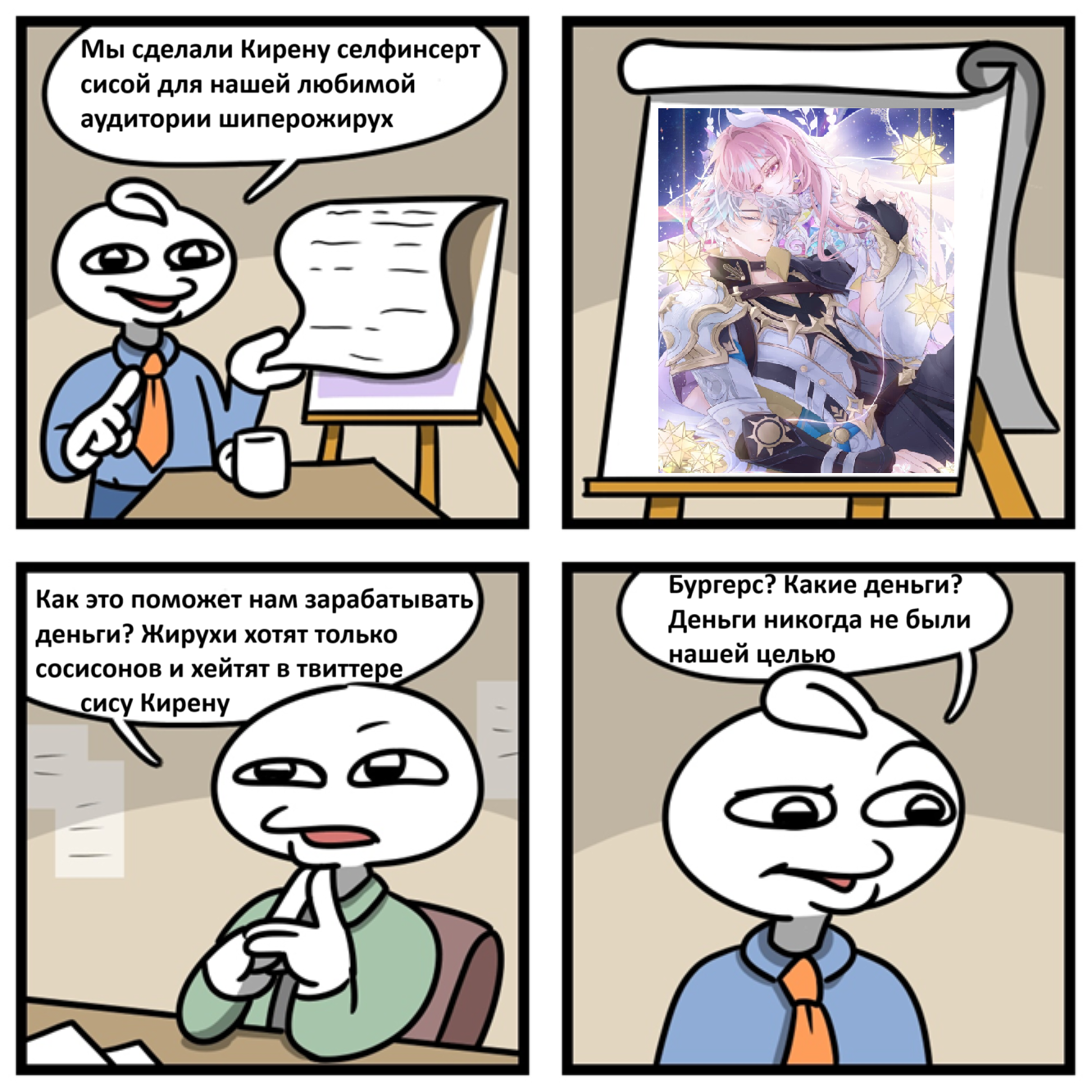 Сейчас главное не бухтеть. От нас требуется сидеть тихо и крутить каждый баннер. После того, как все задонатят на Е6 Кириену, у нас всё будет хорошо. Каждому выдадут довольствие, как в свое время владельцам Цзинлю - каждый будет ваншотать контент.