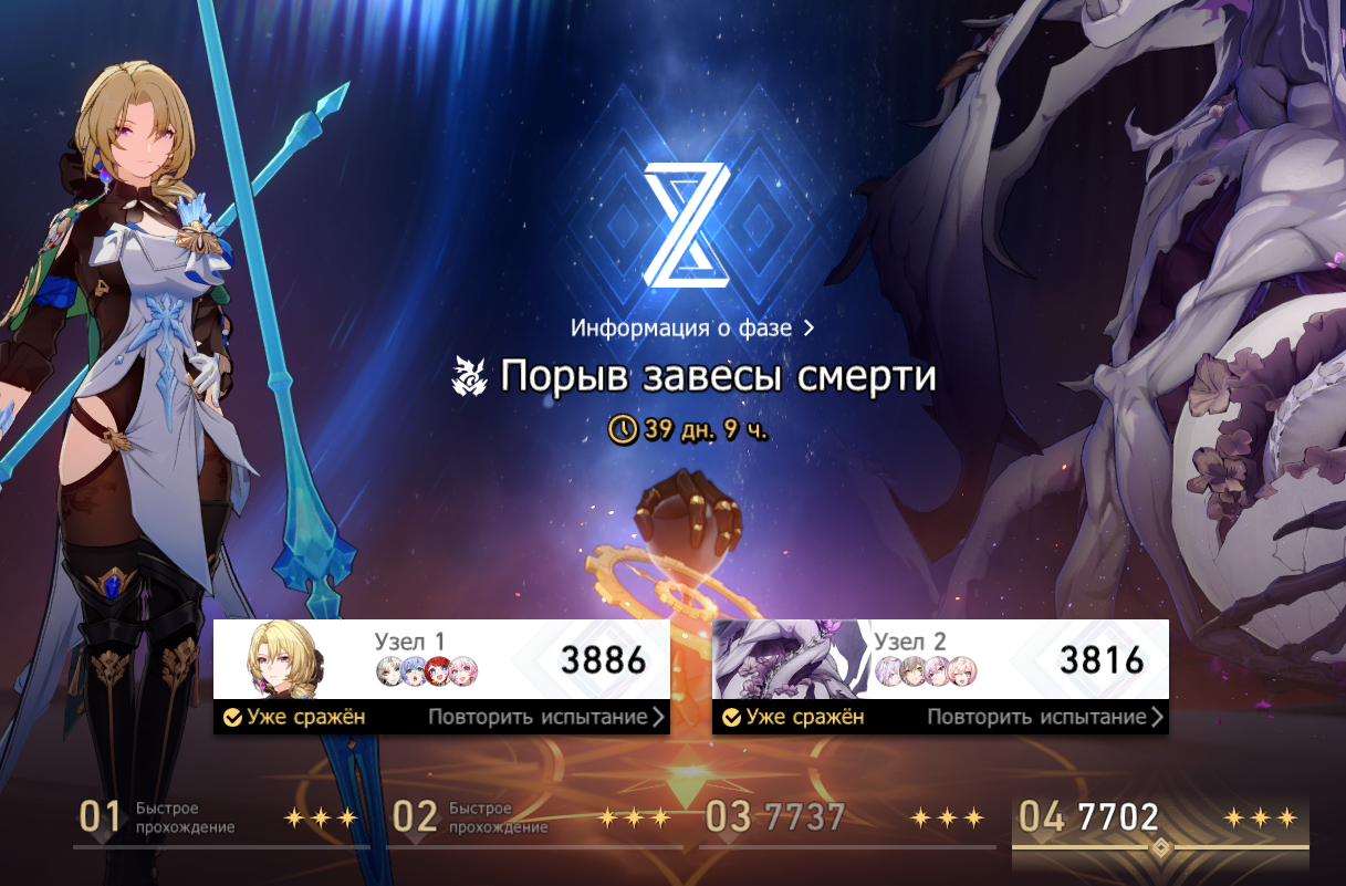 Шёл 5.0 хсра, последняя четвёрка вышла больше двух лет назад, разработчики перестали дизайнить новые планеты и просто возвращают нас на Белобог, переименовывая его каждый год и говоря что это новая планета. Новые сюжетки длятся целых 15 часов, правда 10 часов из них это бегание по локациям, решение головоломок и показывание одних и тех же флешбеков по 350 раз, однако в конце нам дают классный боссфайт и красивую катсцену на 30 секунд, руки сценаристам целовал, absolute cinema. Ещë говорят, в следующем патче выйдет новый персонаж, очередной с пассивкой работающей вне отряда, но слышал что комьюнити называет его пассивку довольно бесполезной, он всего то снимает 50% хп со всех мобов после входа в бой, это успокаивает. Ещё в новом патче обещают 42 рерана и 4 новых ивентовых леги, но, вроде как, там дадут на 10 круток больше чем в геншине, поэтому не вижу причин возмущаться