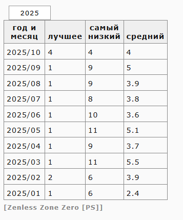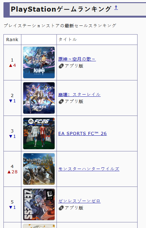 >>5653508 Рейтинги разные по разным странам европы. В германии видимо у михуев никто через плойку не донитить вообще. В японии по лучше, но с сайта этого обновляется насколько я понимаю реже гораздо чем тот японский сайт
