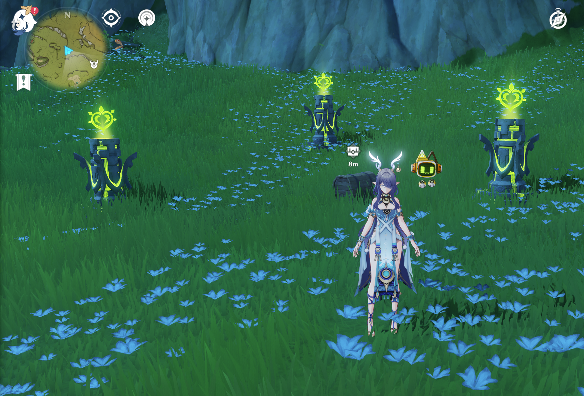 Хз, отмечается ли оно компасом, но вот тут неочевидный сундук - нужно убить ебаку, которая рядом с синей колонной тусит, только тогда появится херня, которую можно будет в колонну кинуть