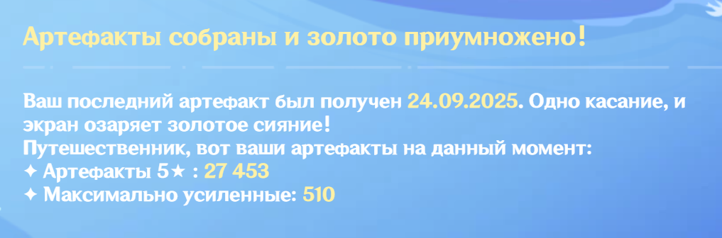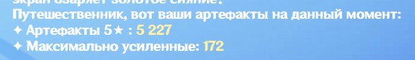 Пиздец, даже у меня 5к артов нафармленные, а я их в последний раз фармил хоть как-то только в середине Иназумы Сколько там цифры у тех кто фармит каждый сет и каждый день?