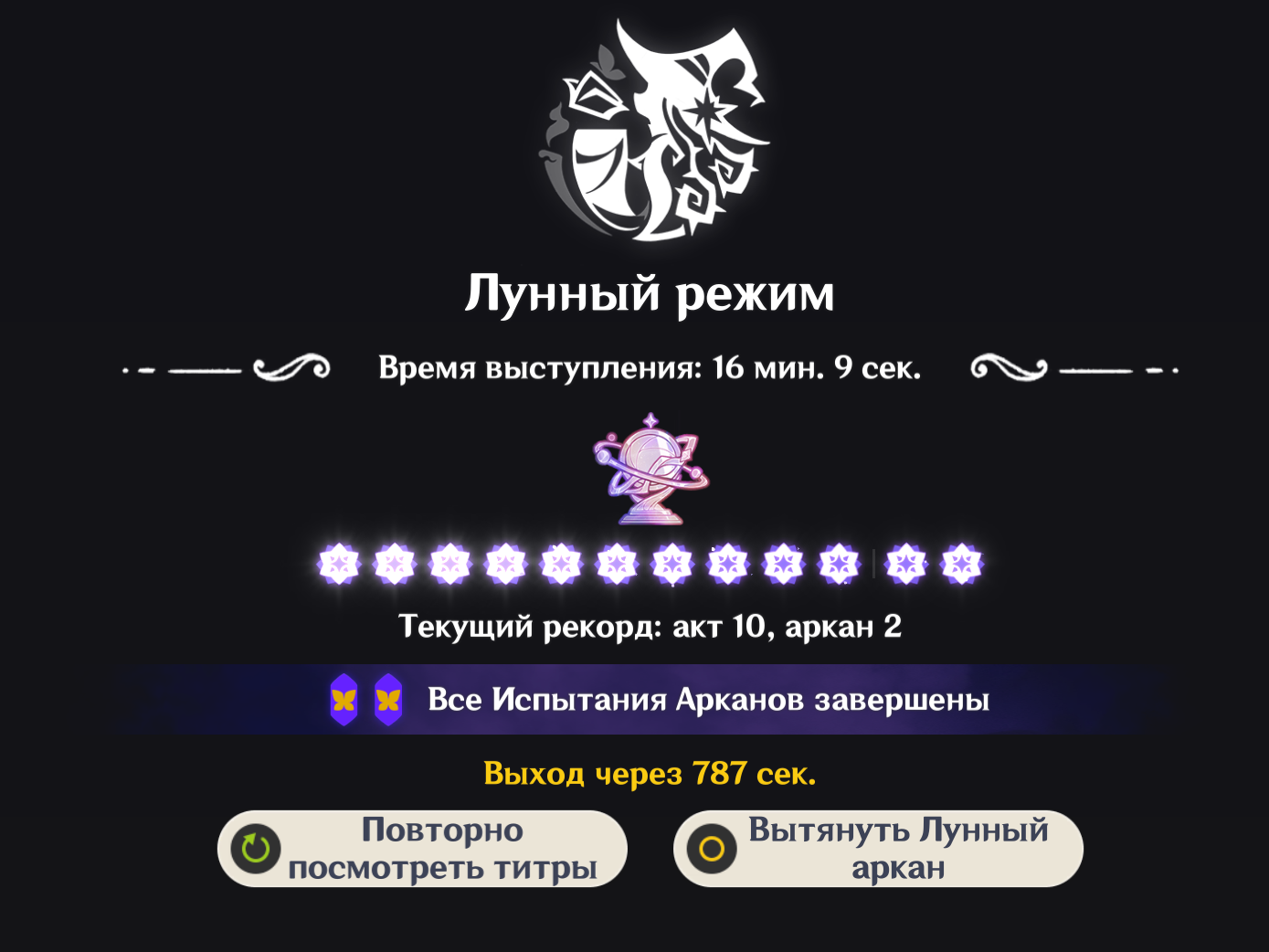 Прошел ща этот каловый театр с новыми уровнями. Прошел так же 2 лунных уровня. В конце выбрал 1 из 2х арканов. А дальше что? Можно сейчас еще получить? или 1 аркан в ресет?