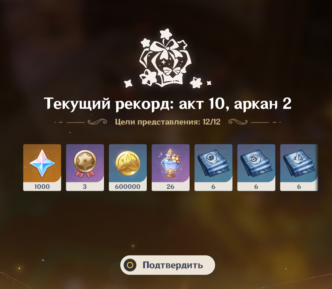 Прошел с горем пополам этот ресет говна, 2 чемпов пришлось экстренно апать до 70 чтоб пустило и светке менять стихию Первые 10 этажей привычной сложности, разве что на пирамиде задушился тестовой коровой без дендро. В целом за месяц мб заретраю 1 этаж на 9 звезд чтоб дали бутылку Ну и традиционно тредовичок очень помог, оплатив чемпика с дамагом выше чем все мои