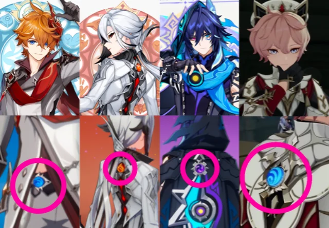 А у кого там серебряные ободки их глаза бога, а не золотые вы говорили? У кого вообще всратые нестандартные глаза бога? У скина дилюка и невилета например вообще нет глаз на одежде, хотя они есть даже у ёкаев.