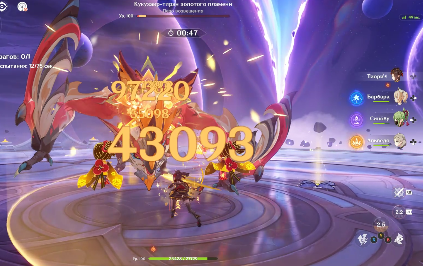Да вроде без особых проблем проходится, сперва правда думал просто летать на Ифе и отстреливаться, но там какой-то хитрый таймер, ну и ладно, взял Елань с Дыней и пошло-поехало. Нормально крошит вражин, как бойфренда Казухи прям. И петуча пришлось ретраить, эх, сперва думал просто забить, но он таки толстенький, так что пришлось отжалеть Шилонен, тут-то без проблем уже прошлось с первого трая. Сара с артами Сянки, даже кубок на пиро, честно говоря, думал не пригодится, ну типа камон, Сара Коннор уже давно на пенсии чилит в дурке, но, внезапно, пришлось расчехлить и таки неплохо бустит, Дыня аж 240к выжала. Неплохо, как для с1 старушки.