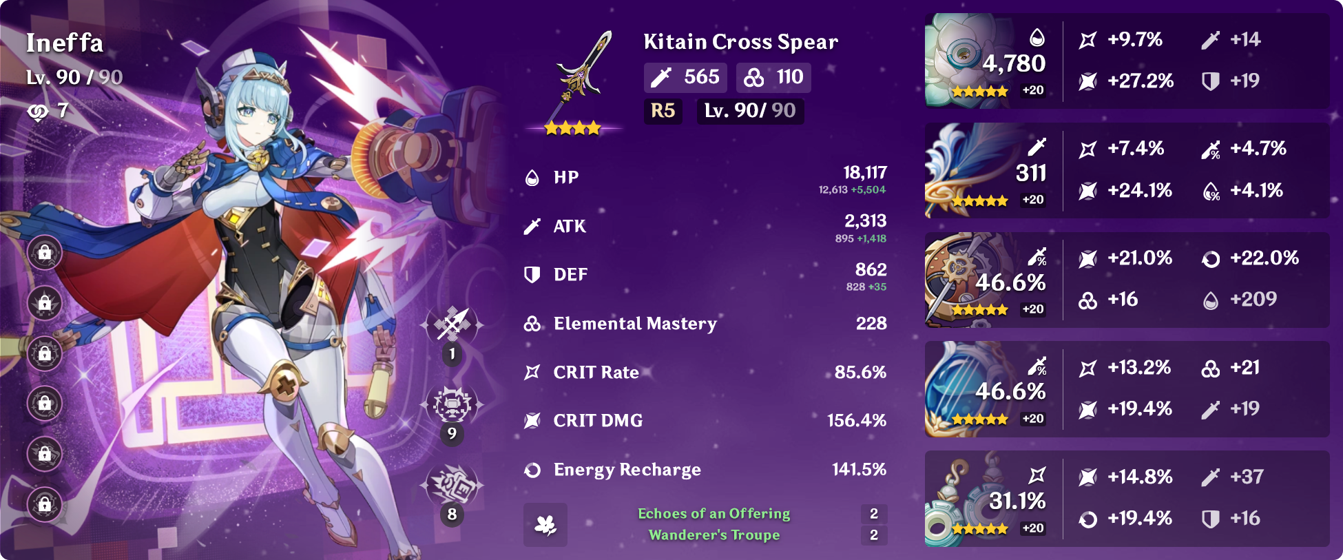 Durin His support capability doesn’t seem as strong as many people expected, and I haven’t heard much about his healing either. At C2 he gains some extra damage buffing ability, but maybe because I’ve played too much Honkai: Star Rail, it feels like what he provides at C2 is quite little. He has a dual-fire stance mechanic: can freely switch and trigger Q after entering fire mode. As a support, his main buff is just resistance shred. He can switch stances to act as a sub-DPS, or simply be a pyro enabler support. He can shred resistance, which works well with Crimson Witch (artifact set). But resistance shred and sub-DPS mode cannot coexist at the same time.
