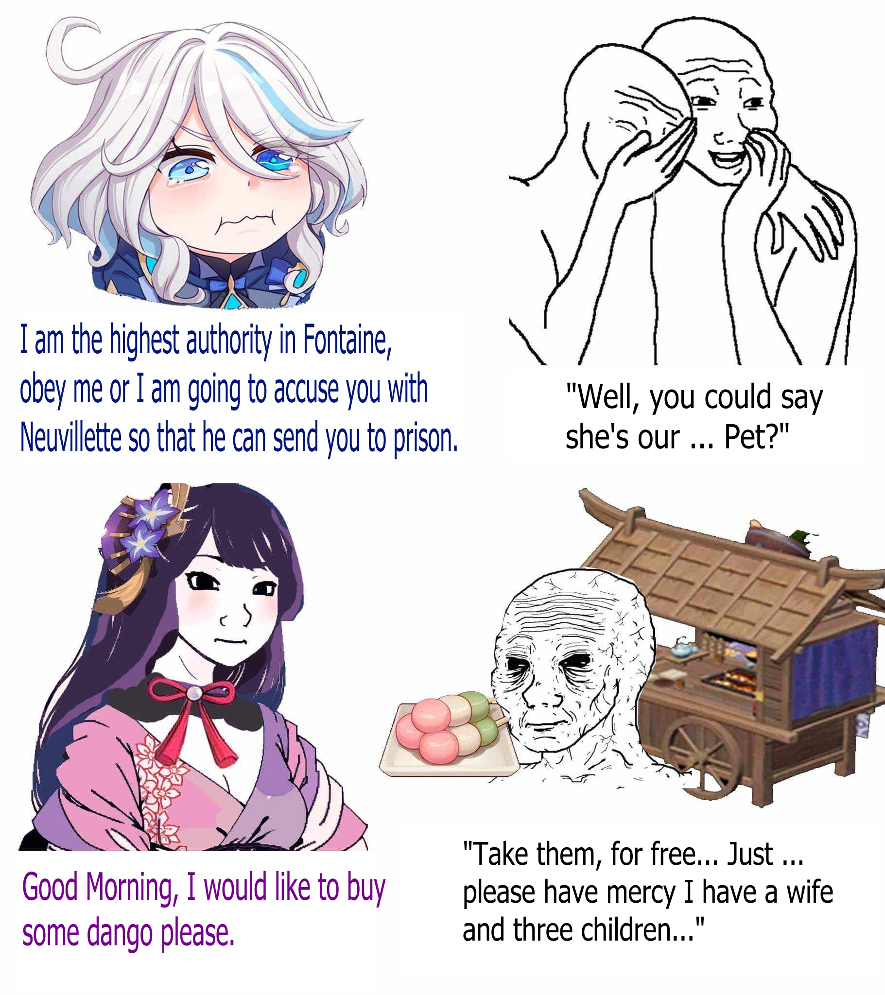 Раз в треде пошли маняфантазии, то я тоже своей поделюсь - давно мечтаю об анемо персонаже, который бы делал инфузию элемента из отряда на все свои атаки, а любые бафф процентов элементального урона переводил для себя в универсальный бафф как у Фурины. Эдакая Часка белого человека.